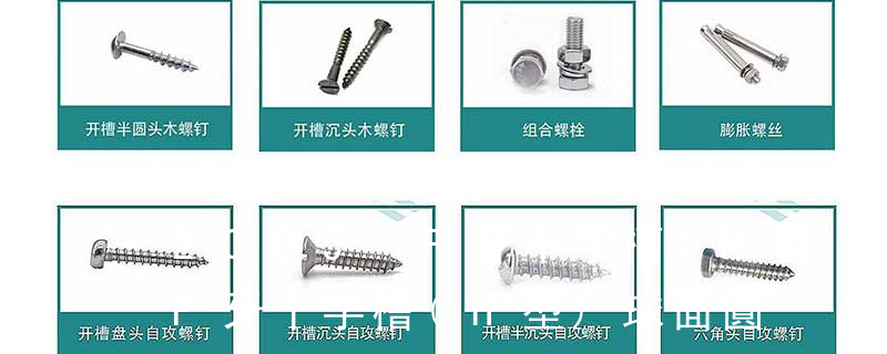 (鐵板牙自攻螺絲) B-2: Plastic Tapping Screw. (塑膠用,自攻螺絲) C: Wooden Screw : 木工螺絲 D: Drywall Screw :水泥墻螺絲 E: Self Drilling Screws鉆尾螺絲(不銹鋼鉆尾螺絲,復(fù)合材料鉆尾螺絲) F:膨脹螺絲,四片膨脹螺絲又